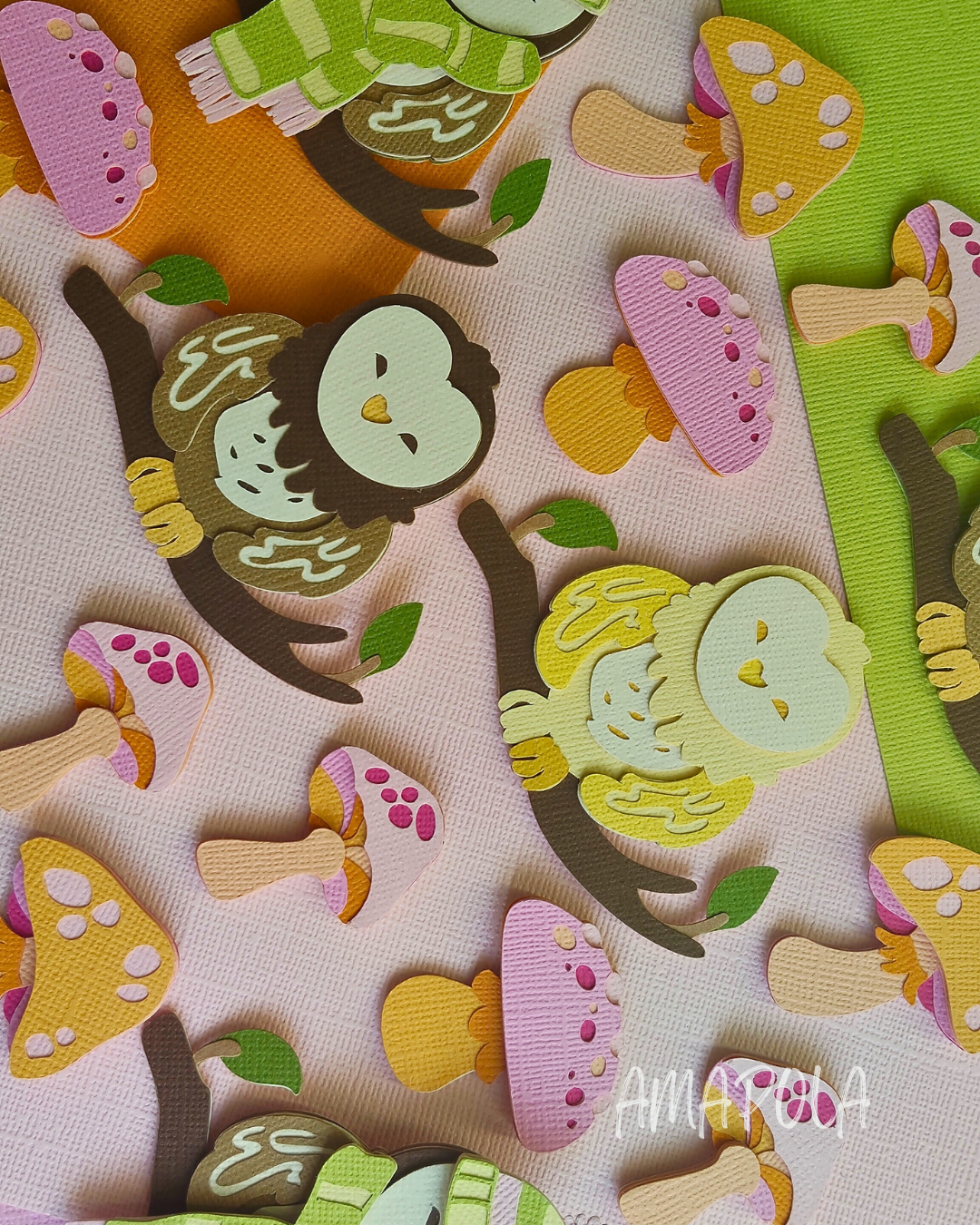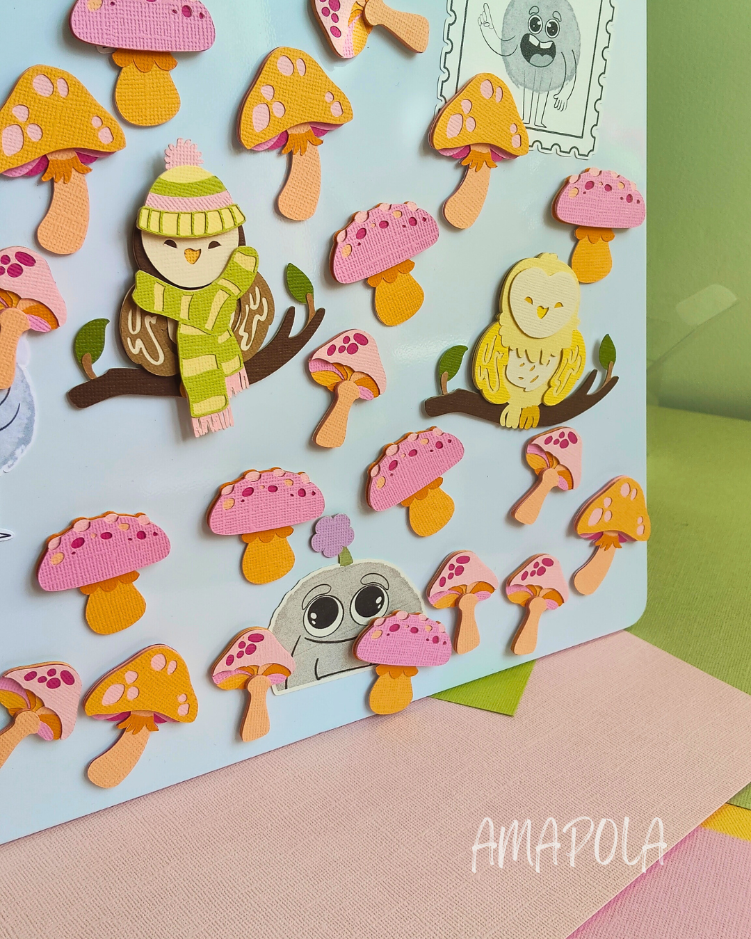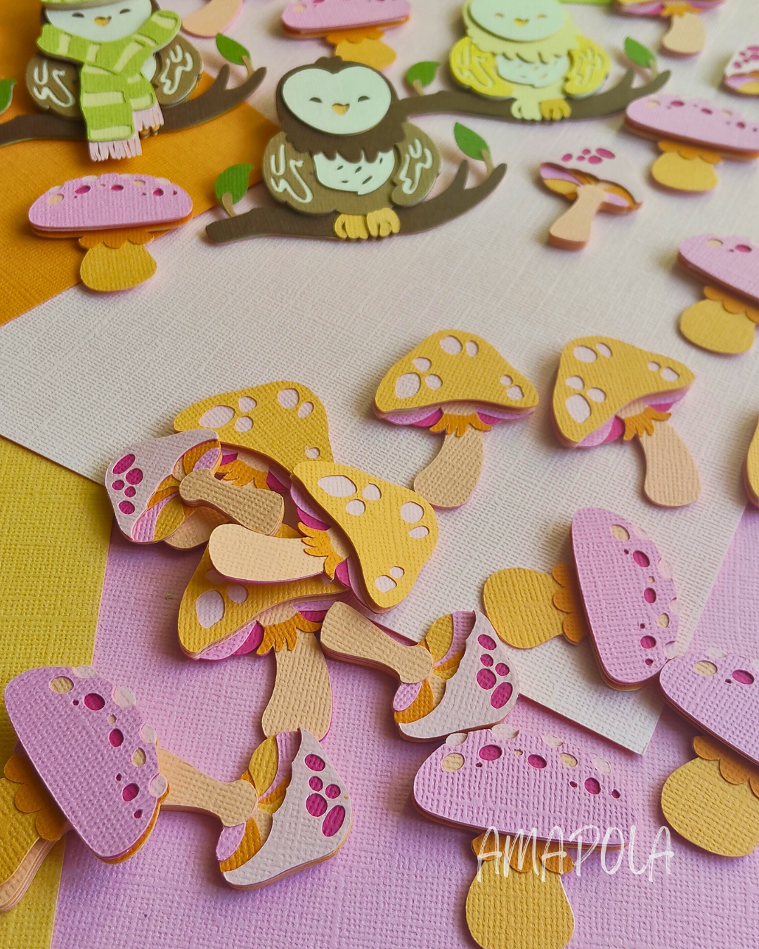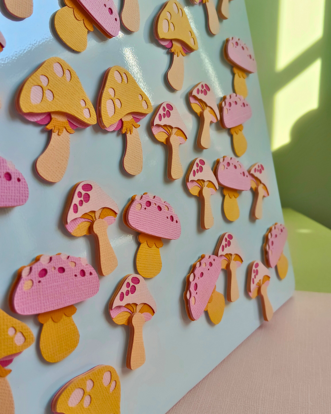 Chaque champignon de ce lot est une création artisanale, composée de plusieurs couches de papier découpé et assemblé à la main pour apporter un joli relief. Les deux premiers champignons possèdent un effet 3D grâce à un assemblage subtil mêlant colle vinylique et mousse adhésive, tandis que le dernier, plus fin, est fabriqué uniquement avec de la colle vinylique pour un design épuré.