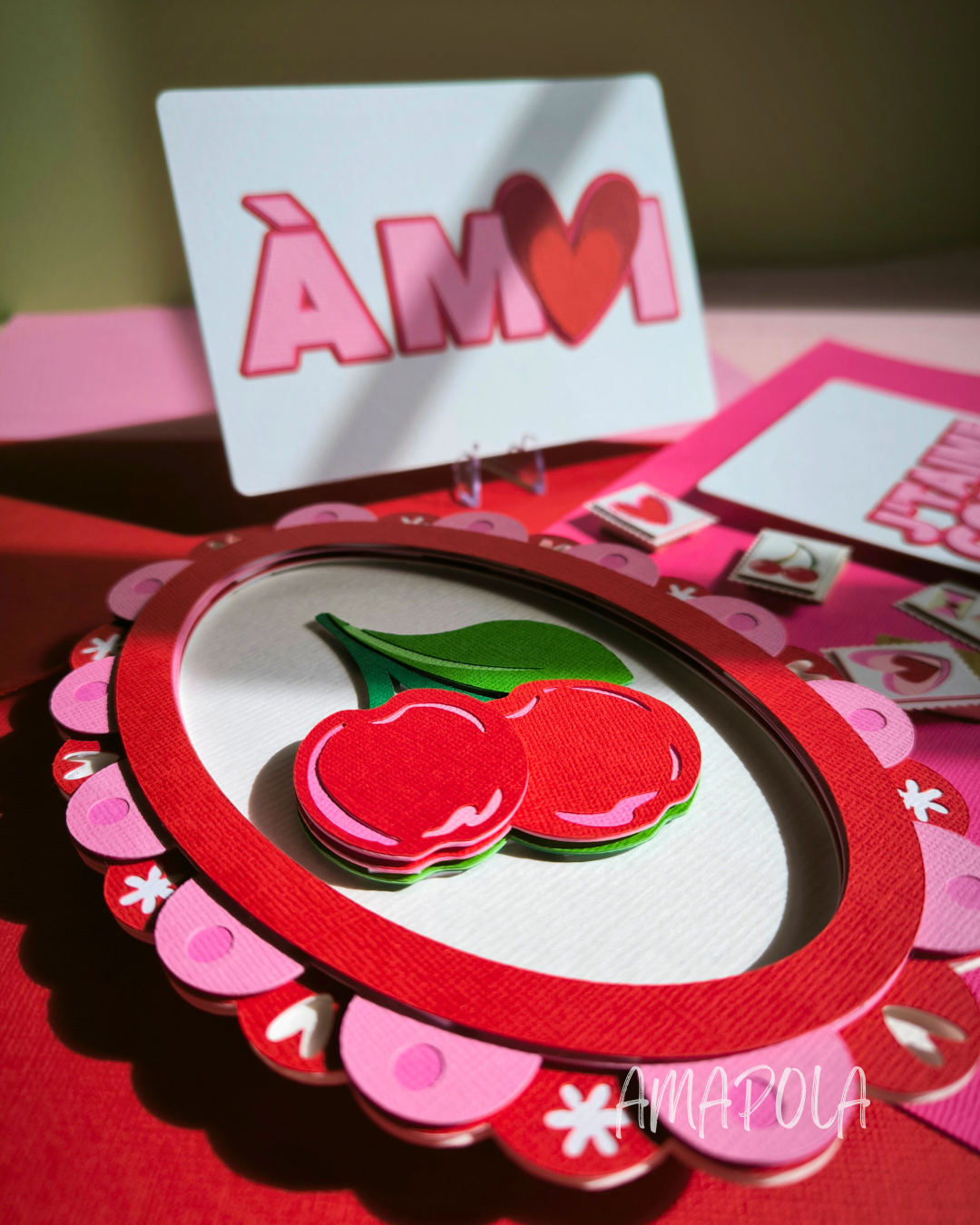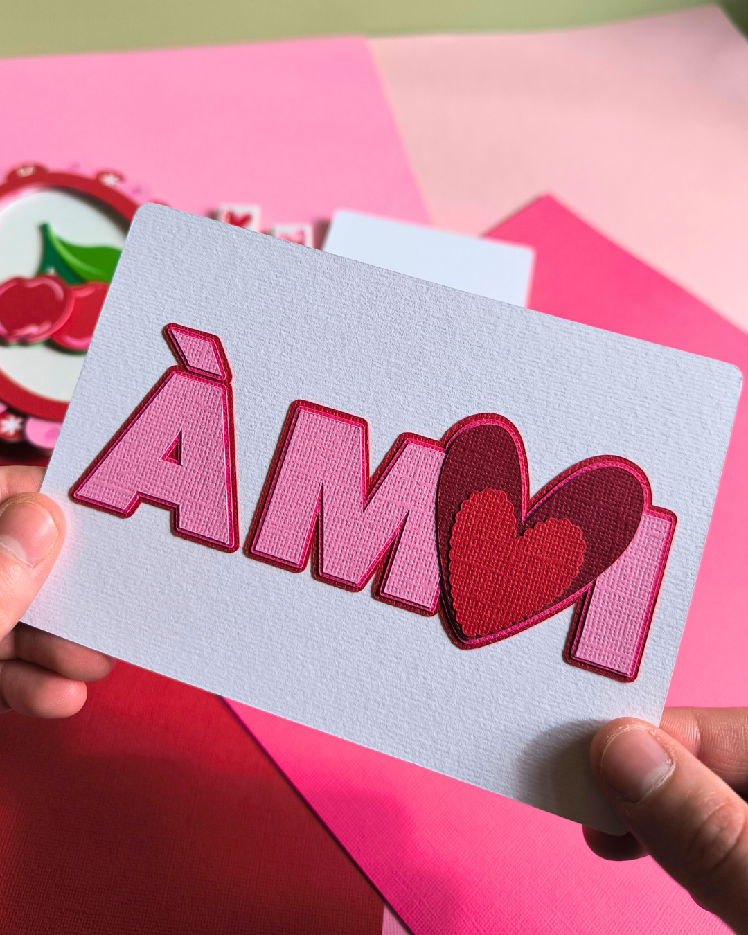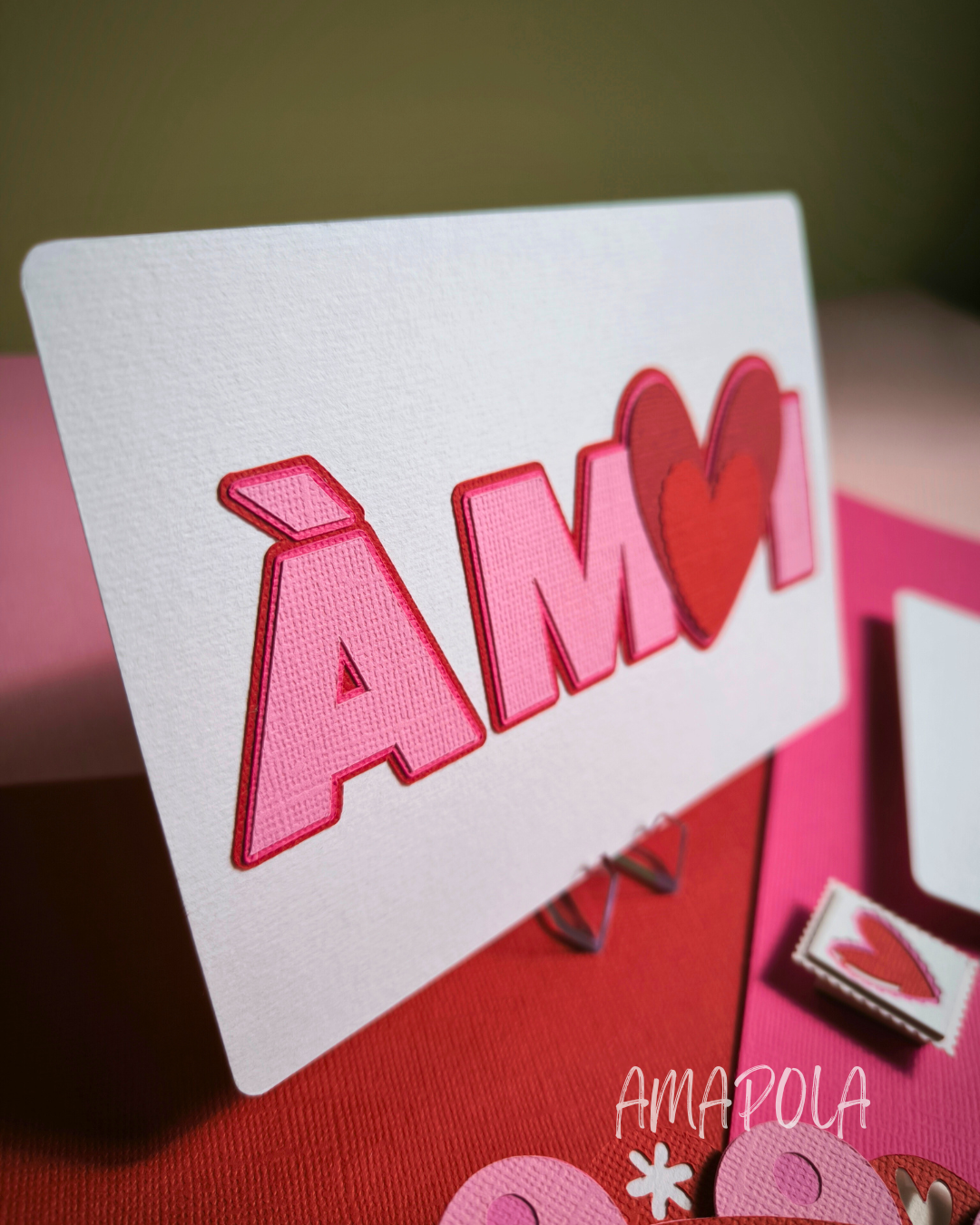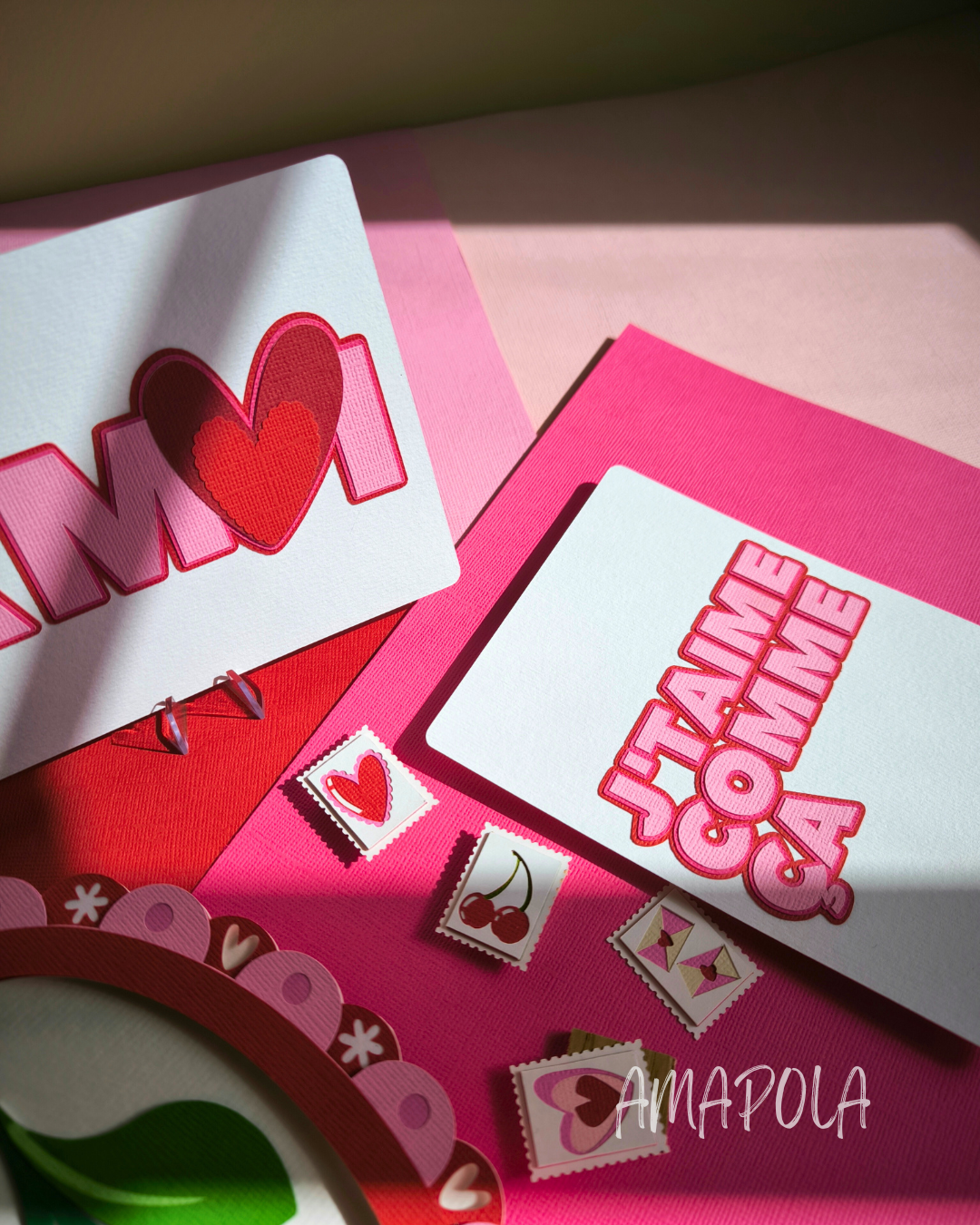 Chez Amapola, chaque carte est bien plus qu’un morceau de papier : c’est un petit manifeste. Ici, le mot « À MOI » est mis en volume avec du papier découpé multicouche, et un cœur vient remplacer le « O » avec un relief aussi doux que symbolique. Une déclaration d’amour (ou d’amour-propre) en lettres capitales, littéralement.
