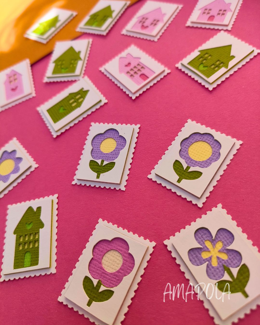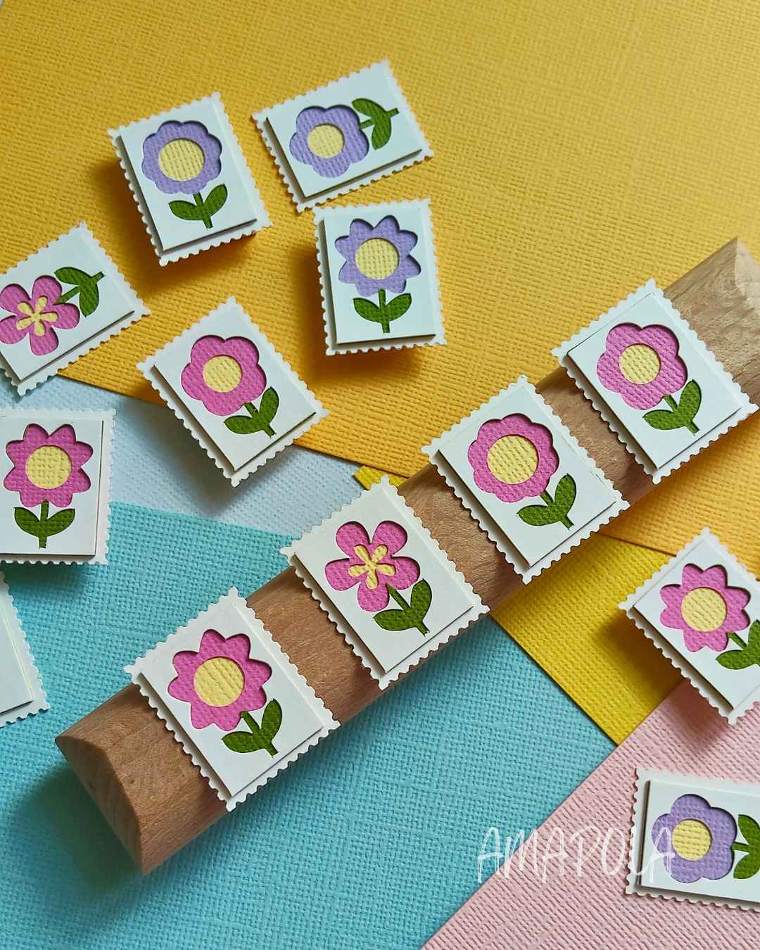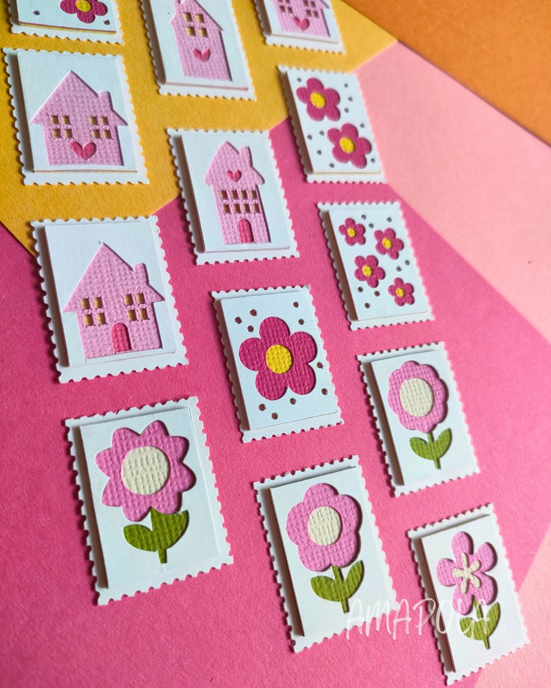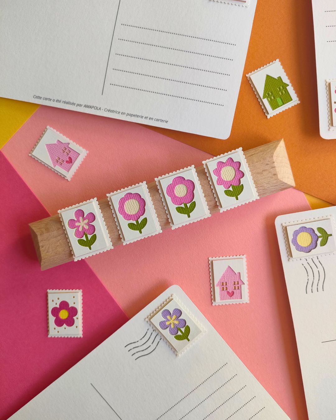 Chez Amapola, un P’tit Timbre, c’est une petite œuvre d’art miniature en papier, façonnée comme un millefeuille… mais sans les calories. Chaque timbre est composé d’au moins 5 couches minutieusement découpées et assemblées à la main, pour créer un joli relief plein de poésie.