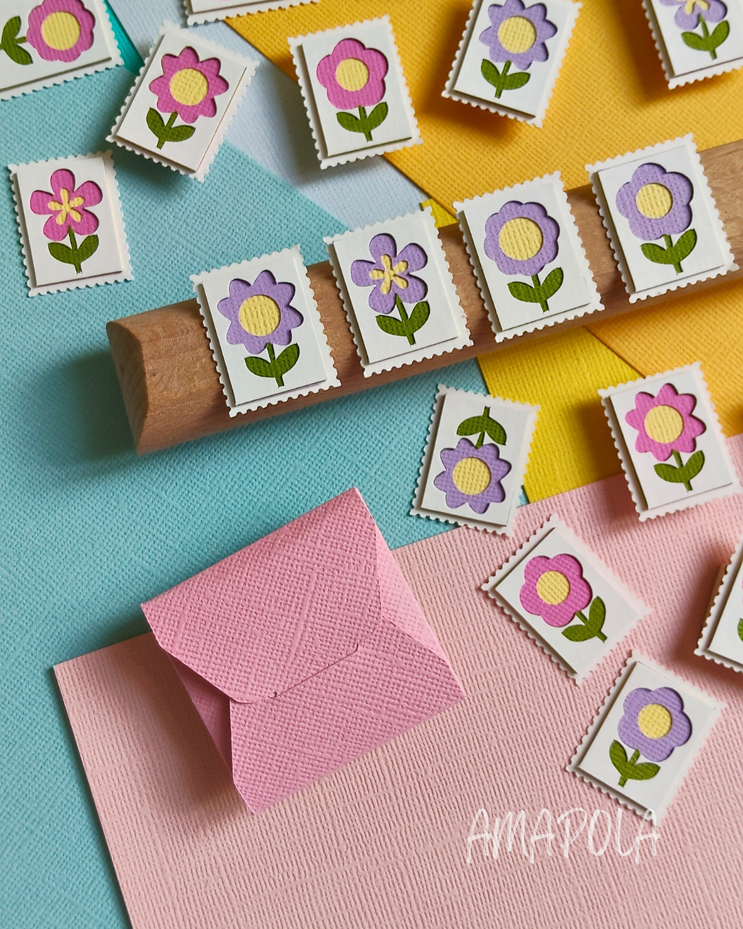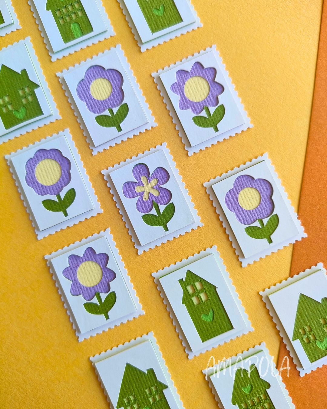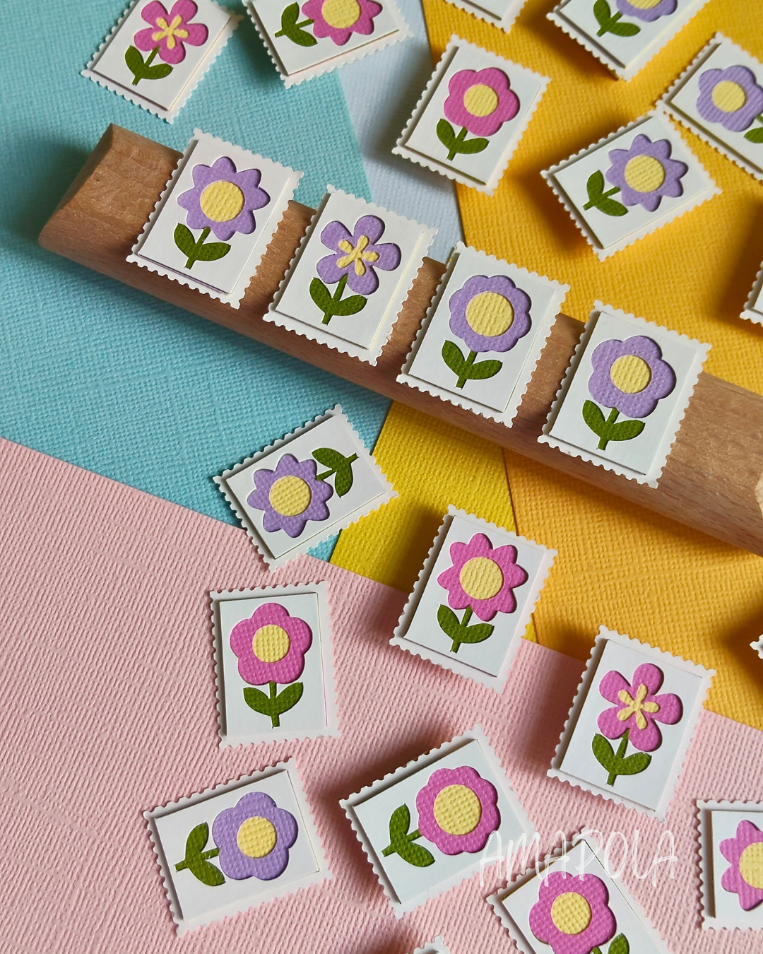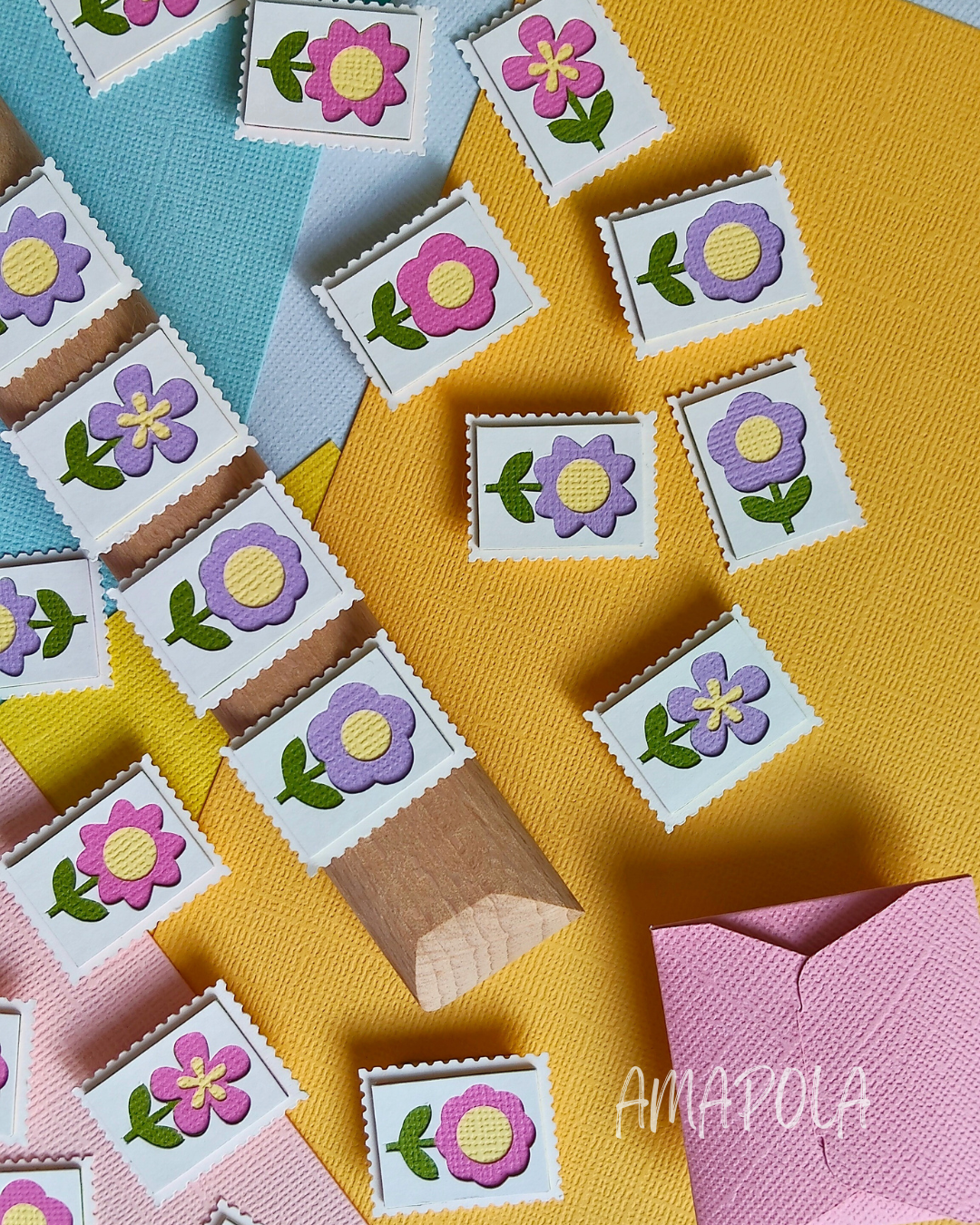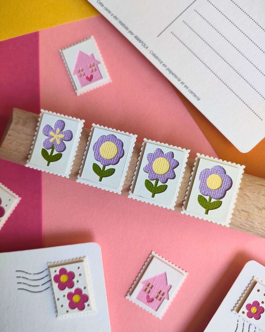 Chez Amapola, un P’tit Timbre, c’est une petite œuvre d’art miniature en papier, façonnée comme un millefeuille… mais sans les calories. Chaque timbre est composé d’au moins 5 couches minutieusement découpées et assemblées à la main, pour créer un joli relief plein de poésie.