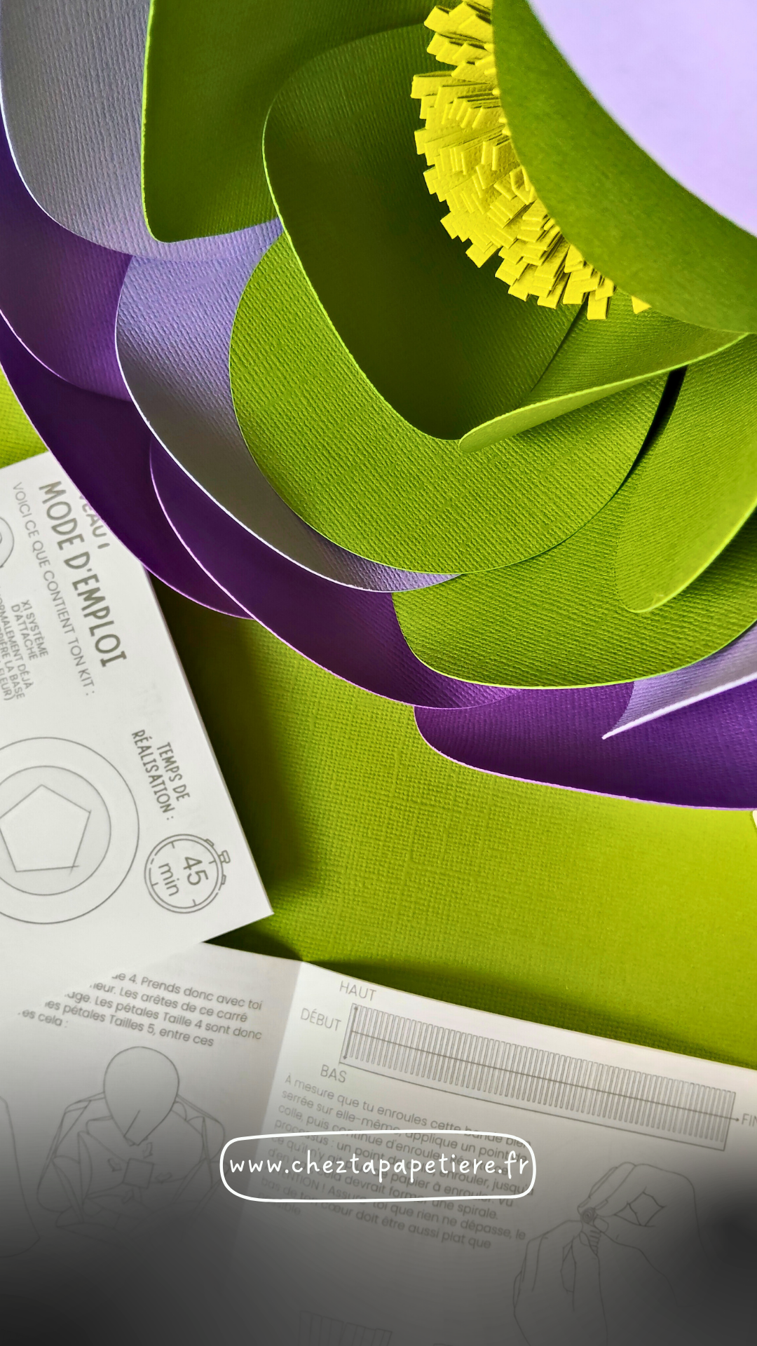 Envie de créer une fleur en papier élégante et colorée ? Ce kit contient tout ce qu’il faut pour donner vie à une fleur en 3D à la maison, sans stress, sans prise de tête.