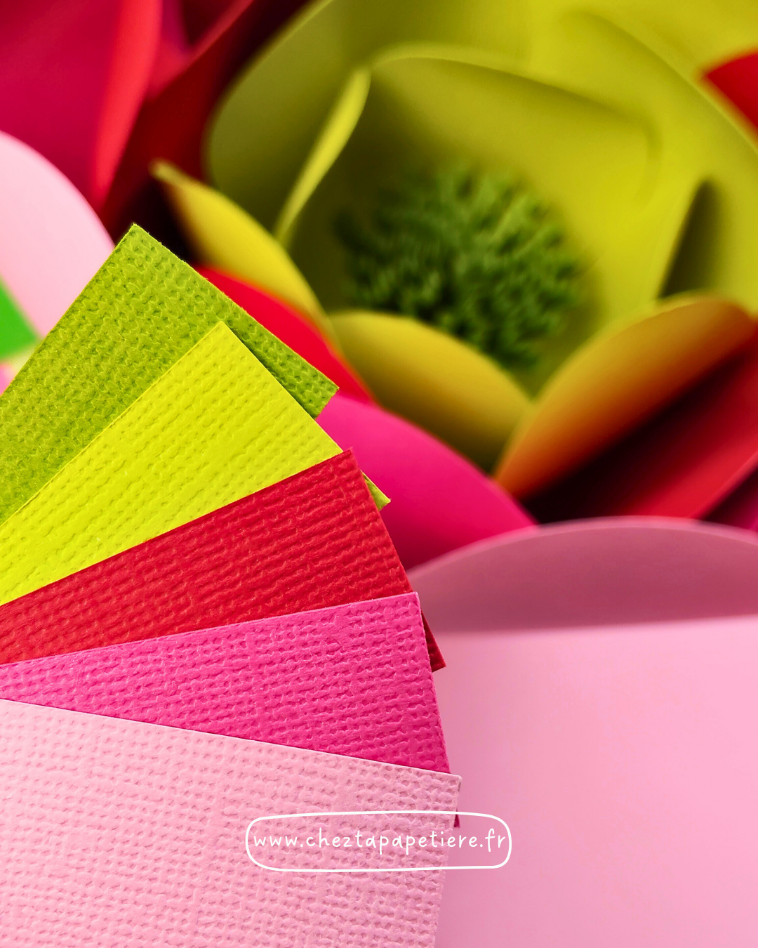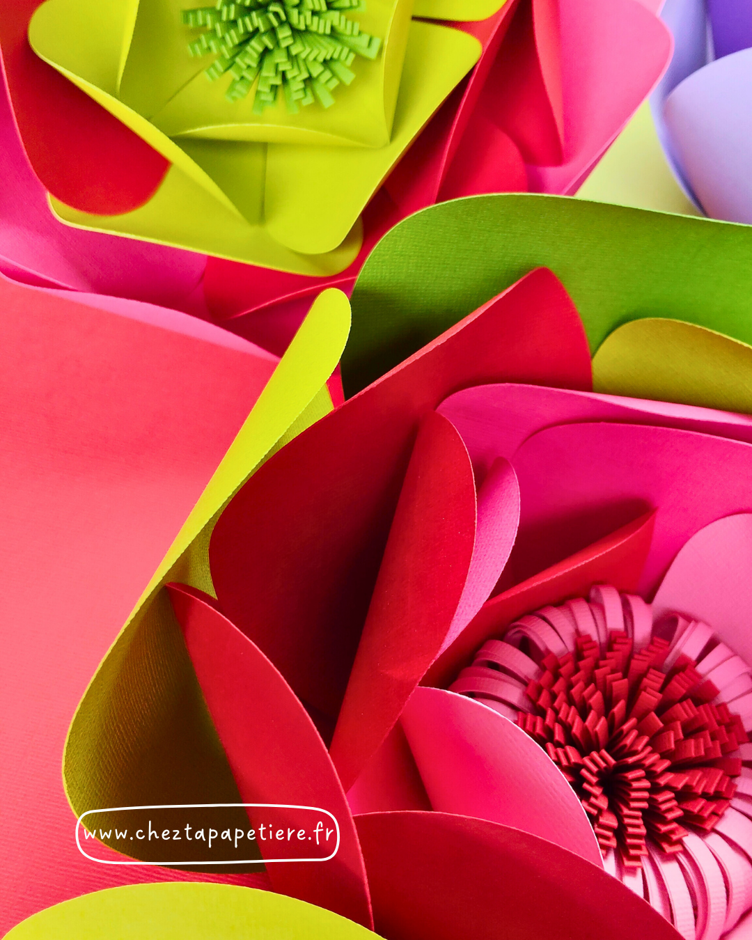 Fabriquez votre propre fleur en papier, variation rouge, rose et vert,