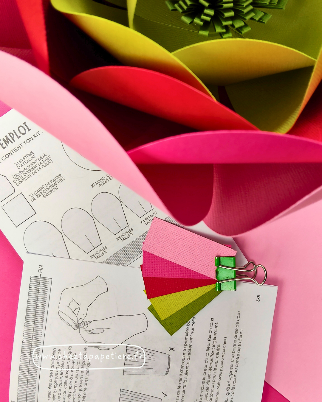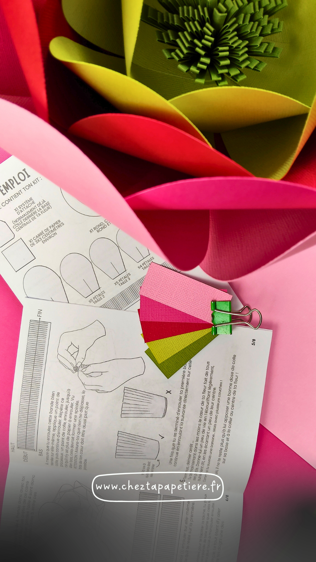 Envie de créer une fleur en papier élégante et colorée ? Ce kit contient tout ce qu’il faut pour donner vie à une fleur en 3D à la maison, sans stress, sans prise de tête.