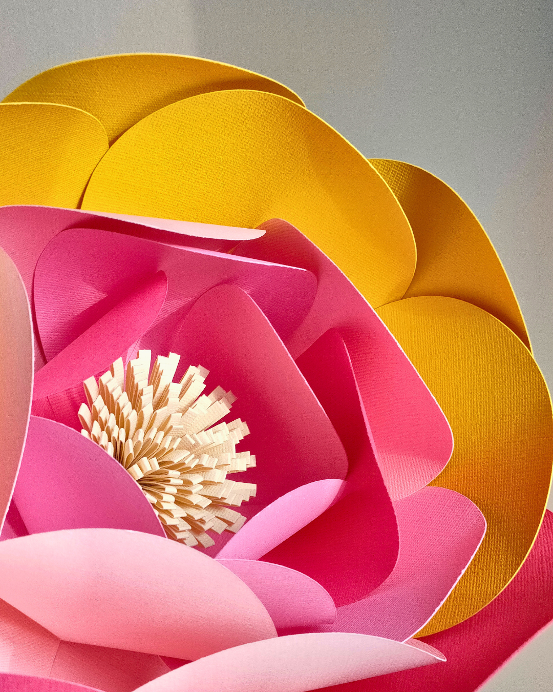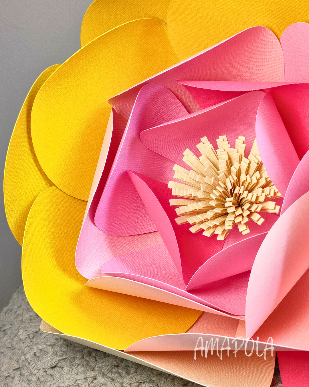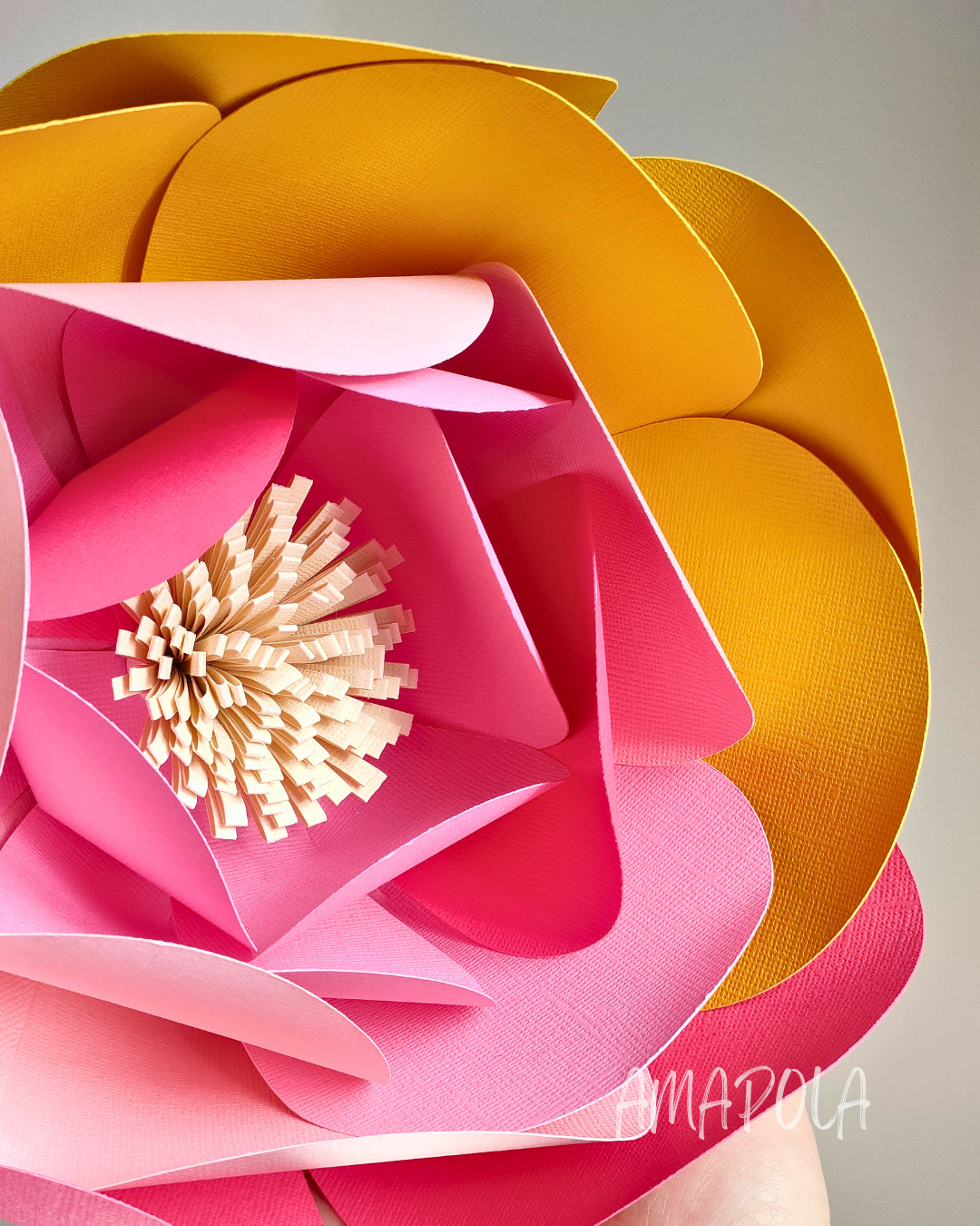Fabriquez votre propre fleur en papier, variation moutarde, rose et crème,