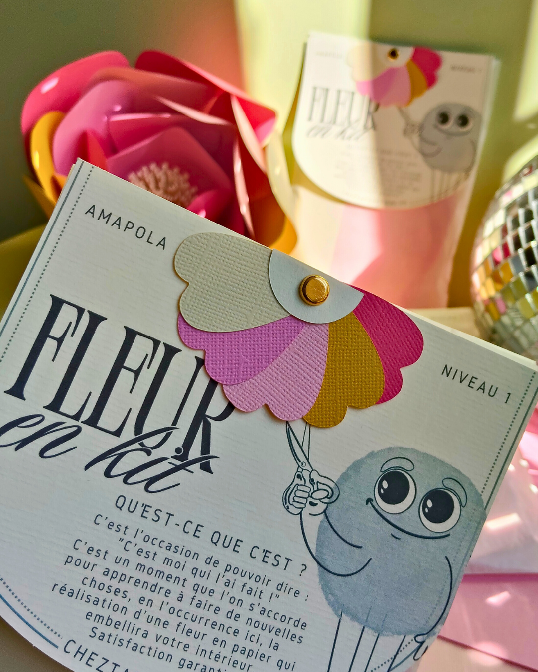 Envie de créer une fleur en papier élégante et colorée ? Ce kit contient tout ce qu’il faut pour donner vie à une fleur en 3D à la maison, sans stress, sans prise de tête.