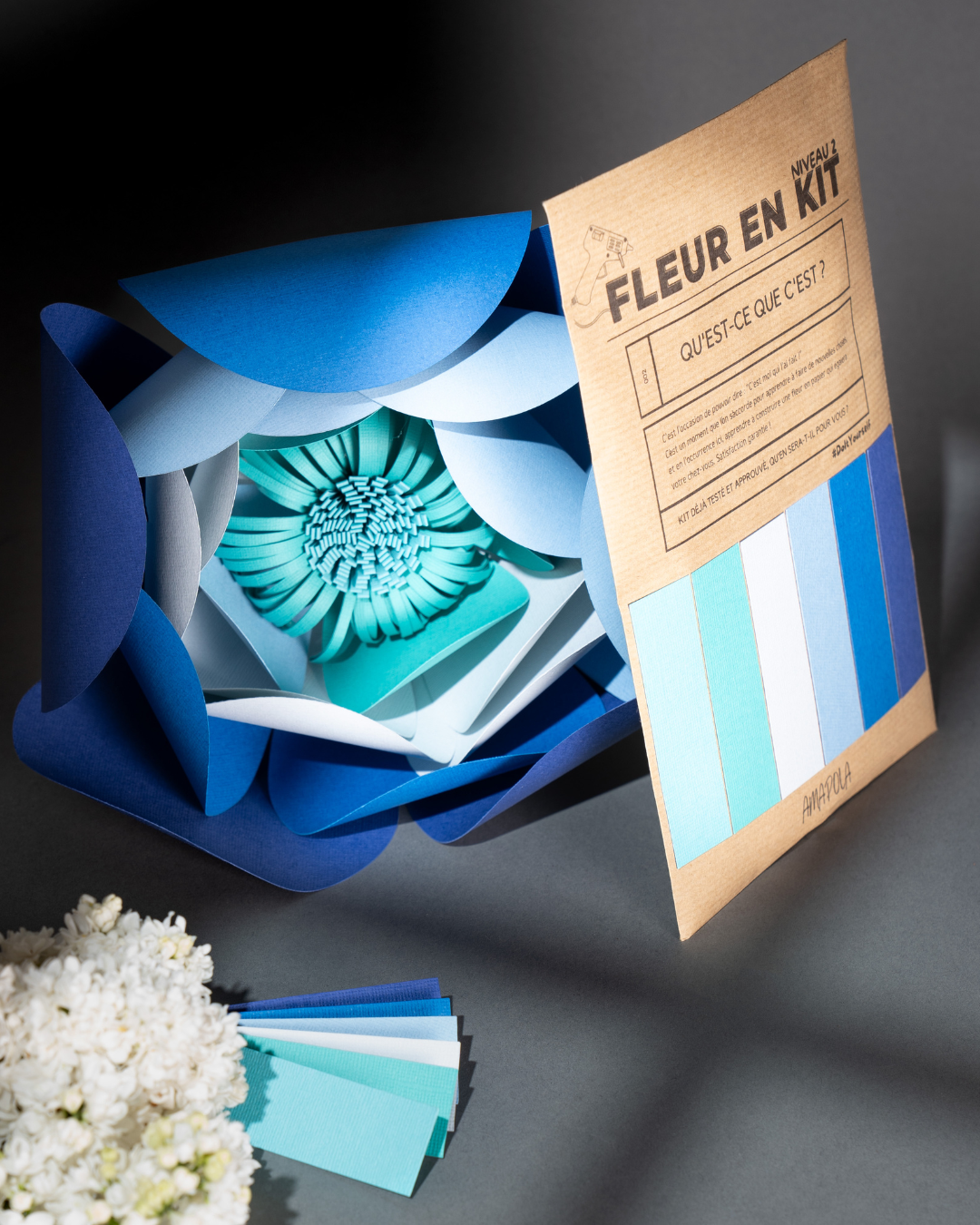 Il contient tout le nécessaire pour créer une fleur en 3D élégante, à fabriquer chez soi en toute simplicité… mais avec un petit défi en plus.